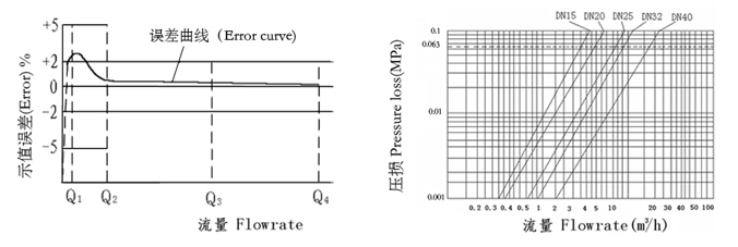 流量誤差曲線 FLOW-ERROR CURVE 壓力損失曲線 PRESSURE LOSS CURVE