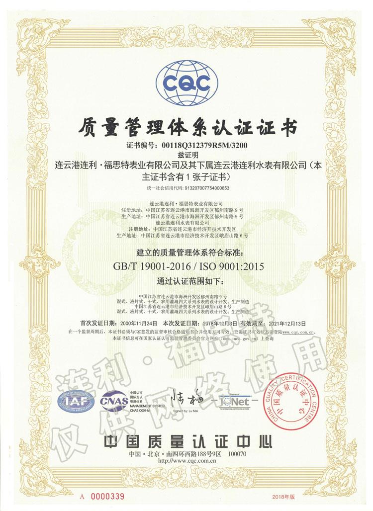 質(zhì)量管理體系認證證書