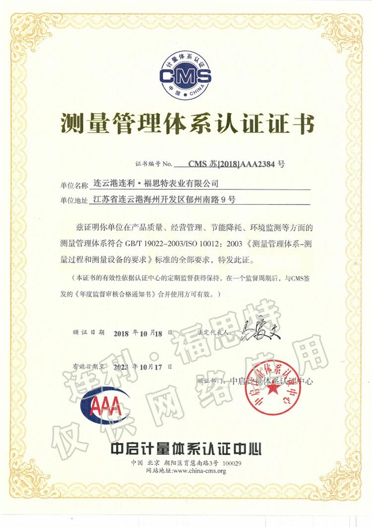 測量管理體系認證證書
